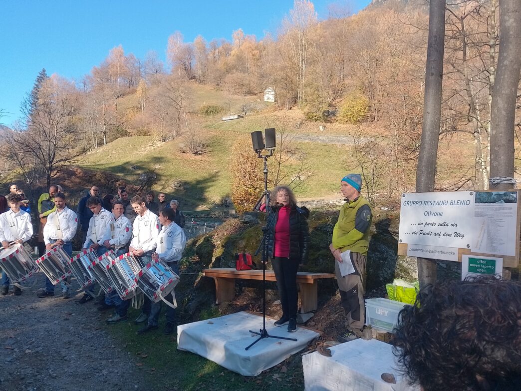 Una magnifica giornata di sole ha fatto da bellissima cornice all’inaugurazione, lo scorso sabato 8 novembre, della nuova passerella pedonale realizzata sulla gola del riale Soia, che separa le due località di Torre e Dangio, nel Comune di Blenio. Una passerella fortemente voluta dal Gruppo Restauri Blenio (GRB) e dal Patriziato generale di Aquila-Torre-Lottigna proprio per ricostruire un passaggio solido e sicuro sulla Soia dopo le distruzioni dei precedenti ponti ad opera delle inondazioni.