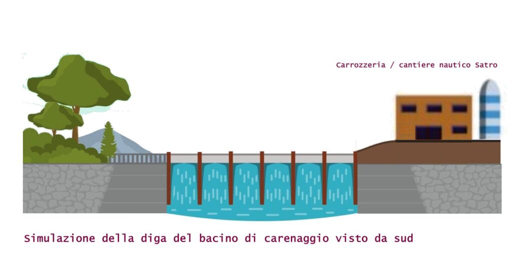L’opera, situata in corrispondenza del ponte di Dongio, non ha finalità idroelettriche, ma rappresenta il cuore infrastrutturale di un progetto di più ampio respiro: la creazione di un bacino di carenaggio per la nautica leggera e commerciale.